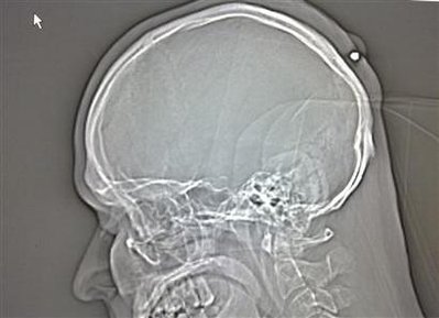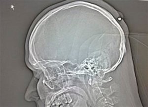 The discovery was made when he recently went to the doctor to have a lump examined. Police are not treating the incident as malicious: “It may have been a shot fired up in the air which entered his head on the way down.”