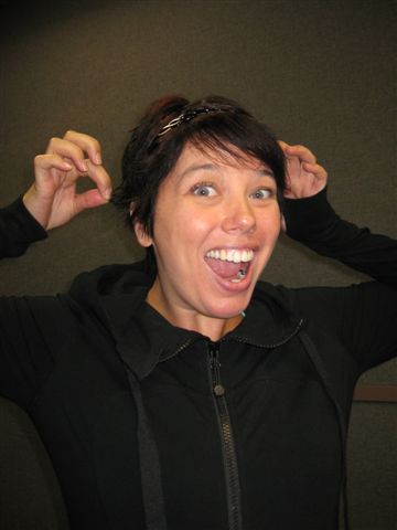 Here are a couple of pictures… me sad about the do?! NO! I like it… I just have to get use to it! I