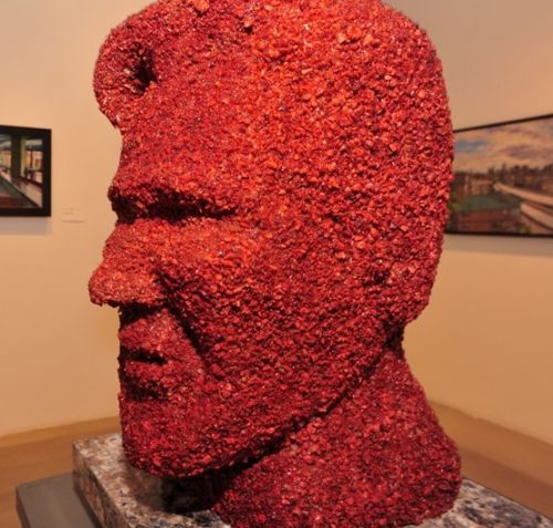 It took 3 months for artist Mike Lahue to make a bust of Kevin Bacon out of — you guessed it — bacon!!
