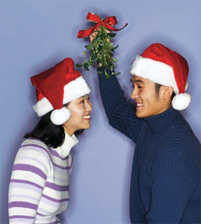 CORRECT MISTLETOE ETIQUETTE: a man should pluck a berry when he kisses a women under the mistletoe. When the last berry is gone — there should be no more kissing!
