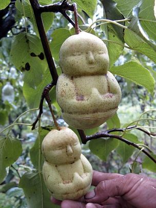 A Chinese farmer, Gao XianZhang, wasn’t going to let any economic downturn get the best of his crop sales — he invented a plastic mold that shapes his pears into cute little baby buddhas!