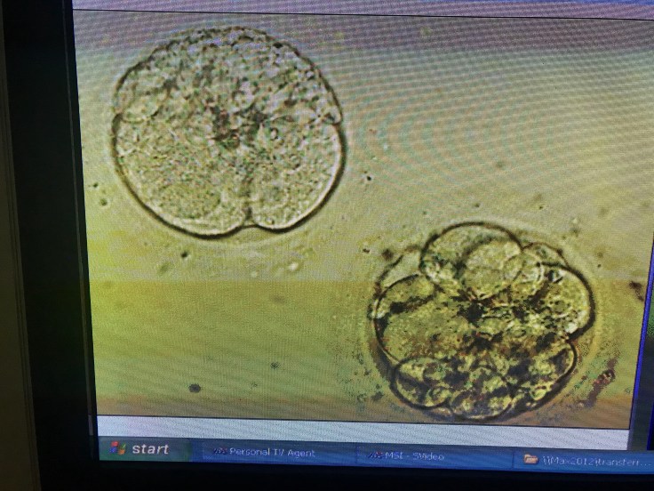 That’s the mindset I had once changed into my sexy patient gear (sarcasm), waiting for my turn. I googled songs with the word miracle in it. I sang. I shimmied. I went in with a smile and saw my embabies (embryo babies):